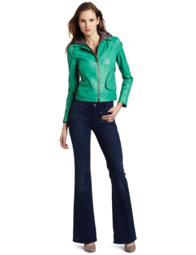 - This sleek, two-in-one leather jacket has a cute-on-its-own zip-out hoodie, and features a chunky metal zipper and padded shoulders. Side zip pockets. Notched collar with snap closure.