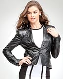 Score a bad-girl look with this bebe leather jacket, featuring body-contouring seam detail and perforated paneling. Offers hook clasps at front. Style it over favorite bodycon dresses to give them a sexy edge. Center back to hem: 21".